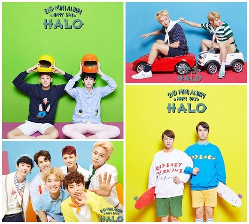 이날 공개된 사진 속 헤일로는 컬러풀한 배경을 바탕으로 디노와 재용은 스케이트 보드를 들고 오운과 윤동은 미니카에 앉아 장난스런 포즈를 취하고 있다. 인행과 희천은 컬러풀한 헬멧 등의 소품을 활용해 마치 만화 속에서 튀어나온 캐릭터 같은 포즈와 미소로 팬심을 자극하고 있다.