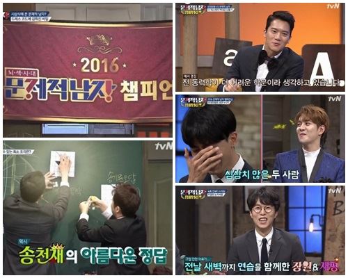 지난 3일 오후 방송된 tvN 예능프로그램 '뇌섹시대-문제적 남자'(이하 '문제적 남자')에서는 '2016 문제적 남자 챔피언십' 특집으로 신재평 송기문 성진환 주우재 장동민이 참여했다.