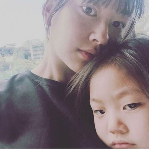 공개된 사진에는 신애가 부쩍 성장한 딸을 안고 카메라를 응시하고 있다. 신애의 딸은 올해로 4살이다. 엄마의 미모를 그대로 닮은 모습이다.