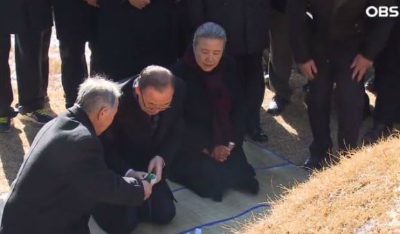 반기문 전 총장 부부가 지난 14일 선친 묘소에서 제례를 올리는 과정을 담은 동영상이 17일 오후 공개됐다.